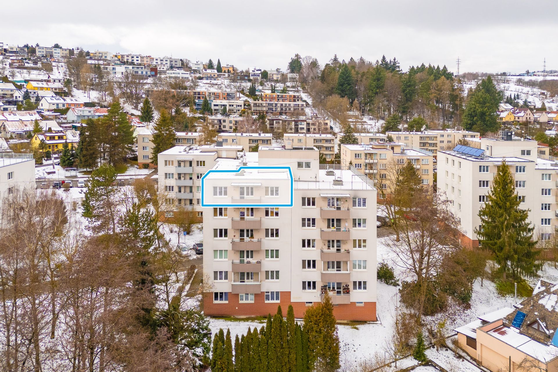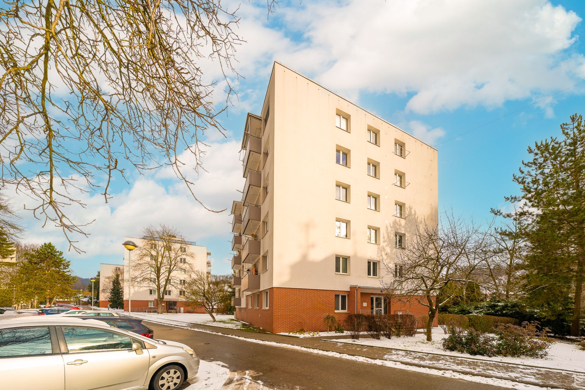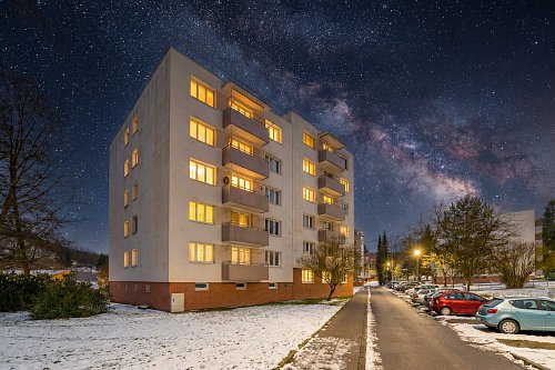 Byt v osobním vlastnictví se nachází v šestém nadzemním podlaží ze šesti panelového domu s výtahem.
