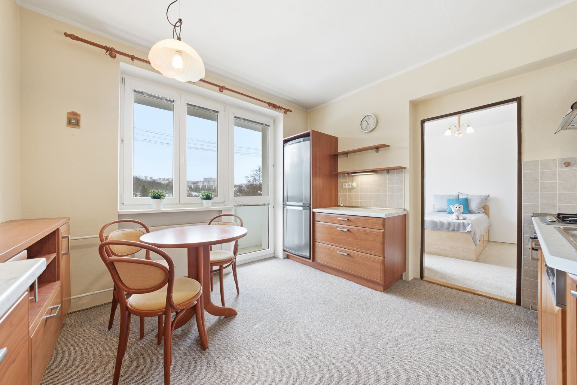 Byt i balkón, který je přístupný z kuchyně, je orientovaný na východ.