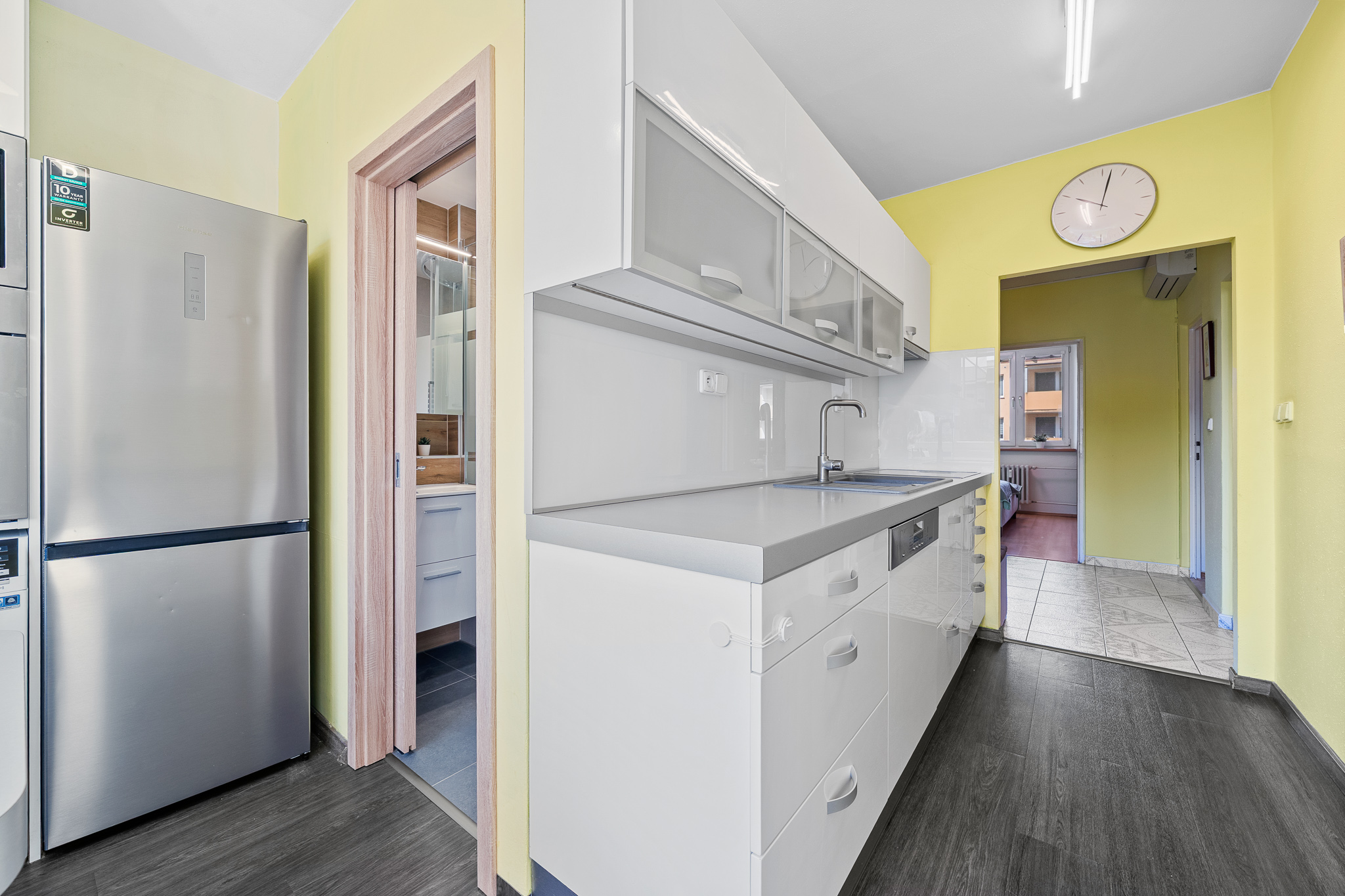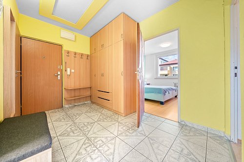 V chodbě je zabudovaná klimatizace značky Fujitsu, která byt v letních měsících příjemně vychladí.