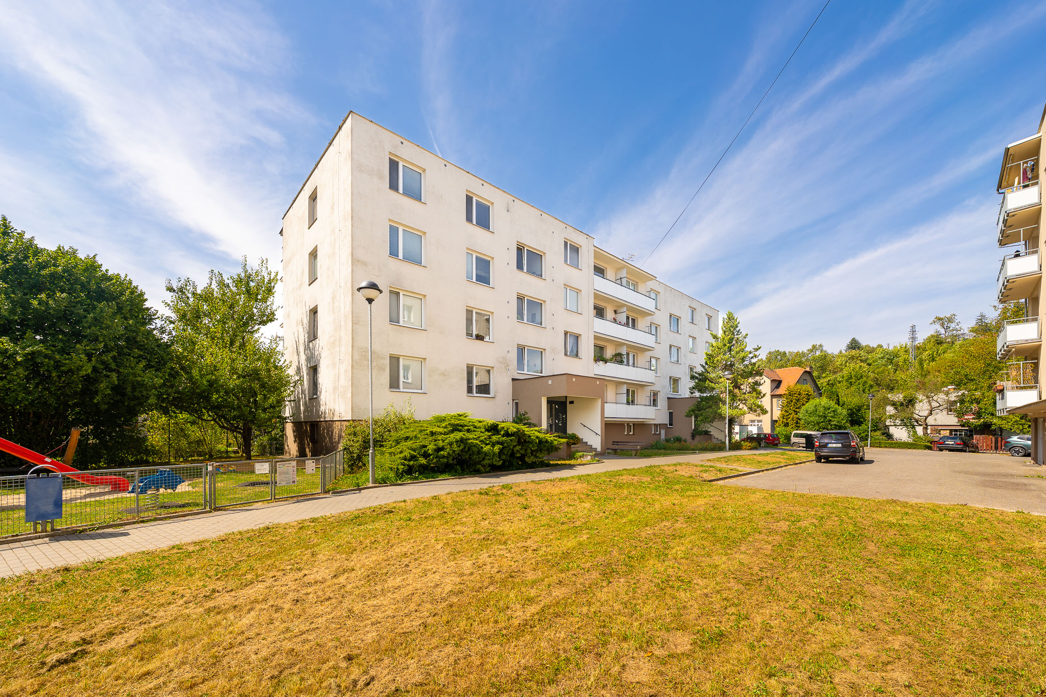 Byt v osobním vlastnictví se nachází v prvním patře ze čtyř samostatně stojícího cihlového domu bez výtahu. Je po kompletní rekonstrukci z přelomu roků 2022 / 2023.