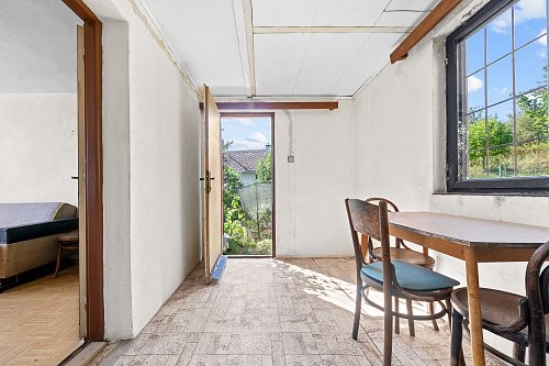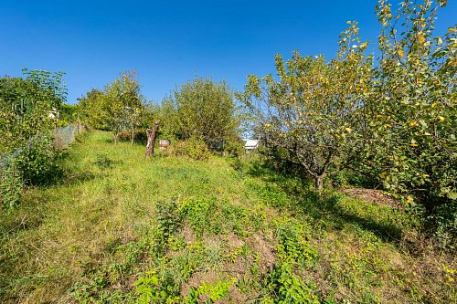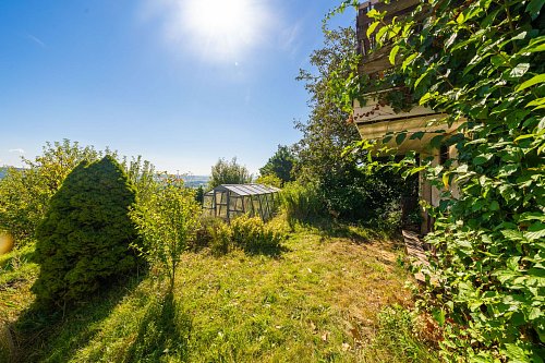 Na zahradě naleznete skleník, několik ovocných stromů, keřů a rostlin a prostor na vybudování posezení.