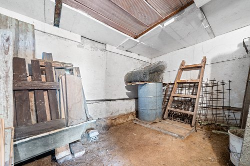 V suterénu chaty, který je přístupný ze strany zahrady, jsou skladovací sklepní prostory a místnost s toaletou, která je napojená na vlastní jímku. V patře se samostatným vstupem jsou dvě místnosti a východ na balkón.