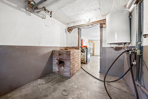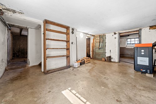 Sklepní prostory s celkovou užitnou plochou cca 53 m2 mají svůj vlastní vstup zvenku, ale jsou přístupné i z přízemí domu. Naleznete zde prostor na dřevo a uhlí, kotelnu a další dvě místnosti.