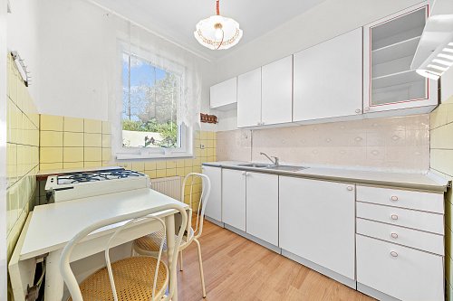 Kuchyňská linka je včetně dřezu Franke a plynového sporáku s troubou Mora. V kuchyni je i přípojka na pračku.