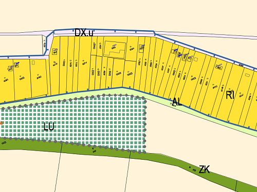 V územním plánu obce jsou pozemky určeny pro individuální rodinnou rekreaci (RI), což umožňuje výstavbu chaty nebo rekreačního domu pro víkendové a sezónní využití.