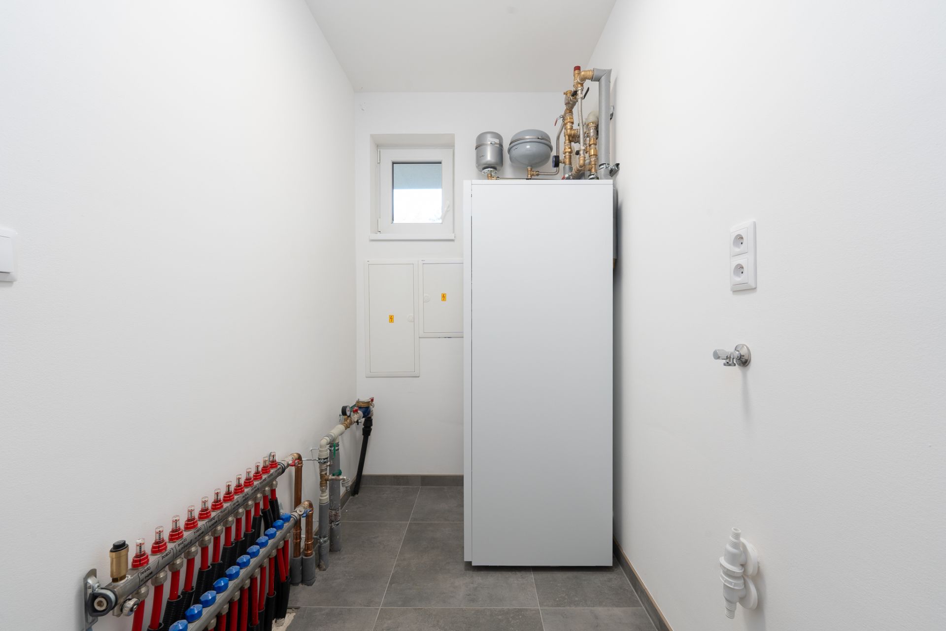 Dům je napojený na elektřinu i obecní vodu. Svod odpadu je do obecní kanalizace přes přečerpávací zařízení odpadních vod, které je umístěné před domem. V celém domě jsou rozvody slaboproudu pro internet i TV. Pro vaši bezpečnost je zhotovená příprava pro kamerový systém a venkovní osvětlení na pohybové čidlo.